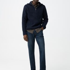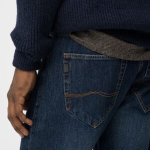 Jeans comfort fit com cinco bolsos. Fecho frontal com fecho zip e botão metálico. Altura Modelo: 188 cm | Tamanho: 32 Composição: 97% Algodão 2% Poliéster 1% Elastano Cuidados de lavagem: Lavar à temperatura máxima de 30º. Não pode usar lixívia. Não pode colocar na máquina de secar. Passar à