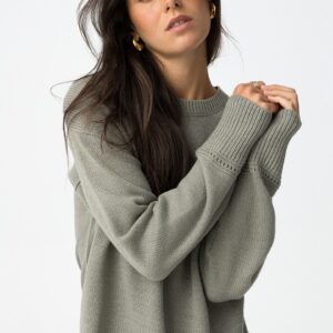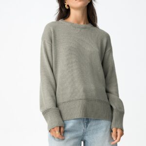 Camisola de manga comprida com gola redonda. Gola, punhos e bainha em rib. Detalhes perfurados na frente e punhos. Corte assimétrico atrás. Composição: 100% Acrílica Cuidados de lavagem: Lavar à temperatura máxima de 30º. Não pode usar lixívia. Não pode colocar na máquina de secar. Passar à temperatura mínima (110º
