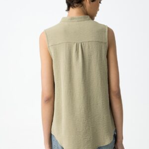 Blusa Acetinada de manga cava e decote em V. Franzido nas costas.