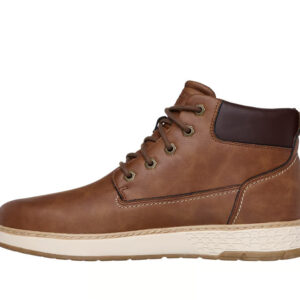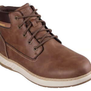 Desfruta de conforto clássico com as Skechers Relaxed Fit®: Garlan – Deno. Com parte superior impermeável em pele vegana e atacadores, palmilhas Skechers Air-Cooled Memory Foam® com infusão de carvão e amortecimento Goga Mat Arch™ para apoio acrescido.