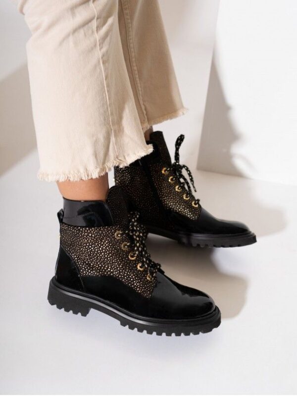 O botim Raissa01 tem um fecho no interior da perna, palmilha conforto e sola leve para proporcionar uma marcha suave. Fabricados artesanalmente em Portugal