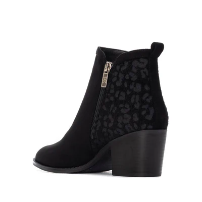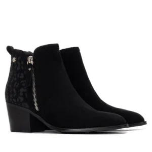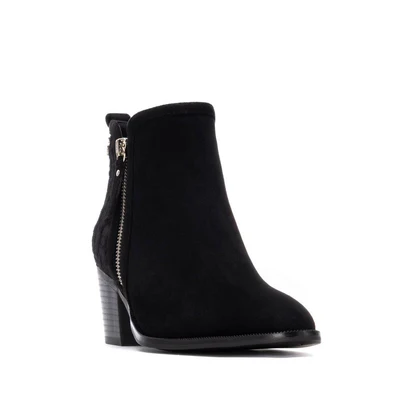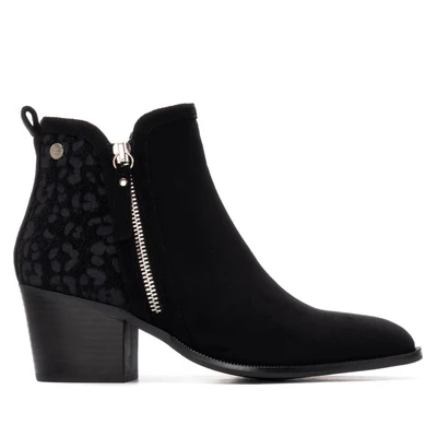 Bota feminina de cano curto da marca Xti. Confeccionada em camurça, combinada com material que imita pelo animal no calcanhar, confere ao design um toque sofisticado e único. Este modelo, com bico fino e salto de 6 cm, oferece elegância e conforto. O zíper lateral facilita o calce e proporciona um ajuste prático. Com cano baixo de 10 cm, é perfeita para aqueles dias em que você busca estilo e conforto. Além disso, o solado antiderrapante garante uma pisada firme e segura. Ideal para complementar seus looks mais modernos e sofisticados. Este modelo obteve a certificação vegana da organização global PETA (Animal Rights Organization).