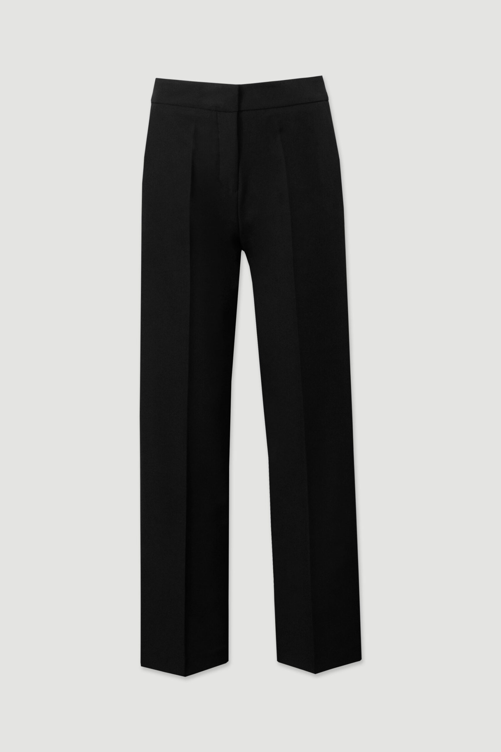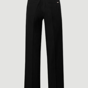 Calça clássica straight de cintura subida. Cinto elástico na parte posterior personalizado com logotipo, para maior conforto e ajuste perfeito. Bolsos laterais e fecho frontal com fecho de correr, gancho metálico e botão interior, garantindo um acabamento sofisticado.