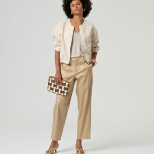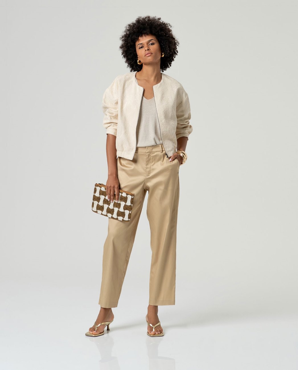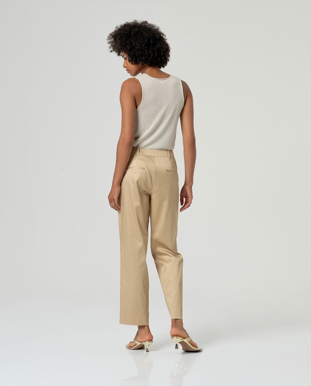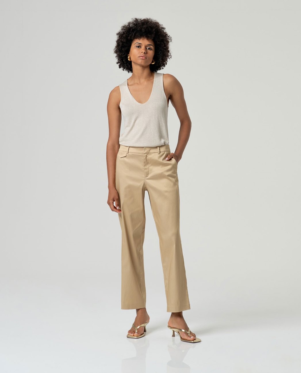 Calça longa de cintura média com silhueta reta. Design com cós fixo, passadores de cinto e fechamento frontal com zíper e botão. Comprimento reto da perna e tornozelo. Feito de tecido com Tencel. Projetado em Barcelona.