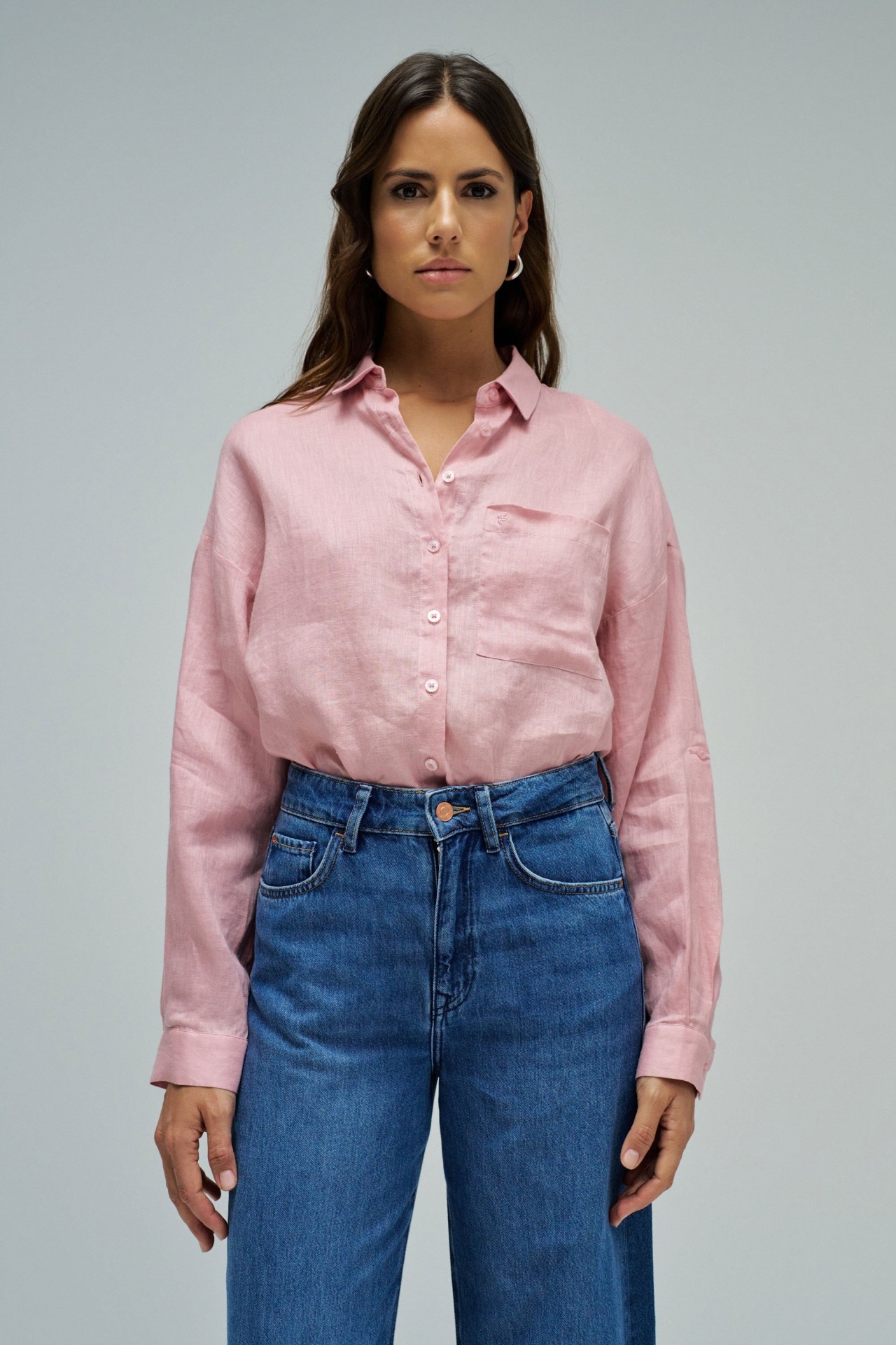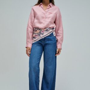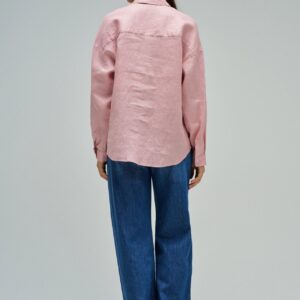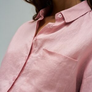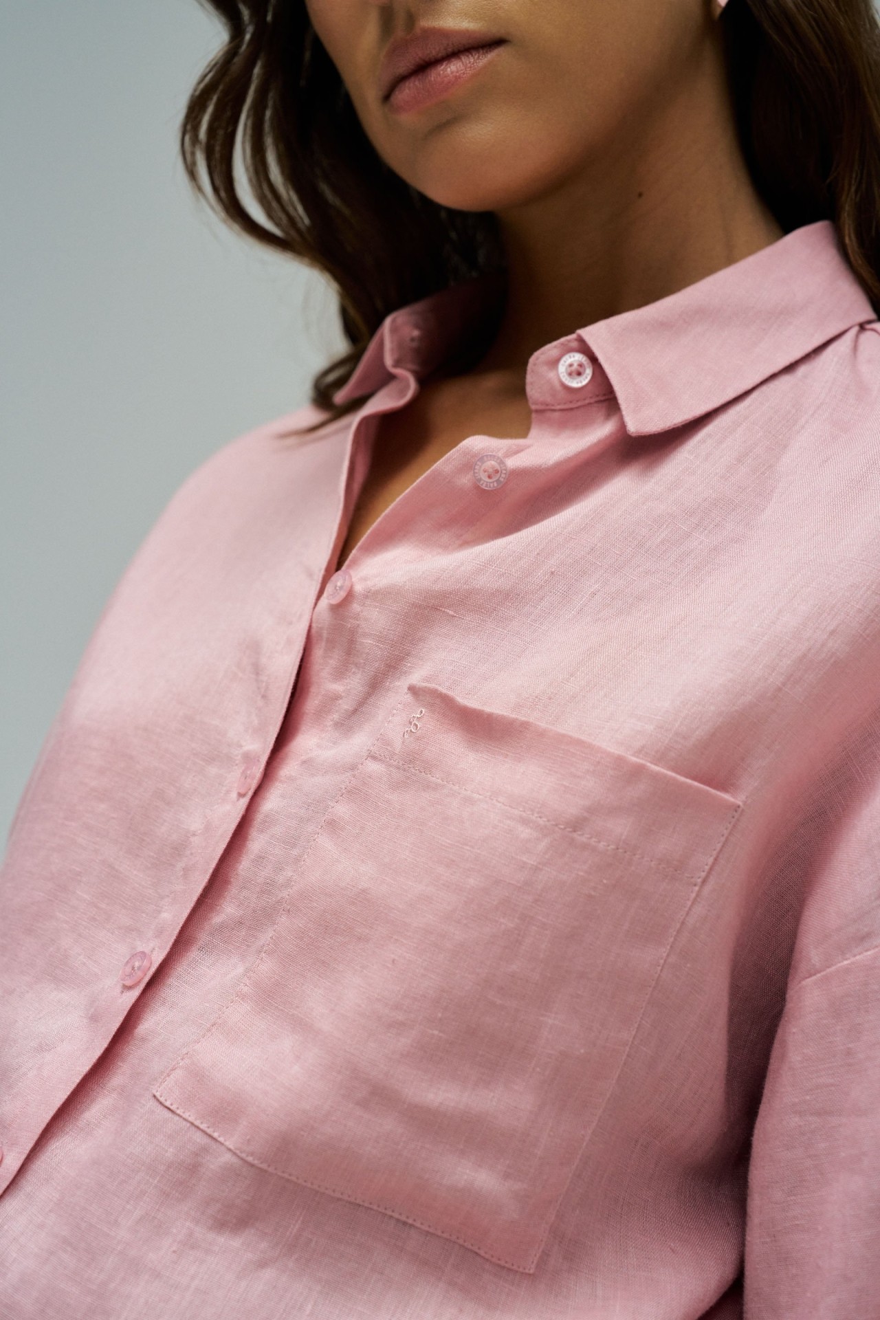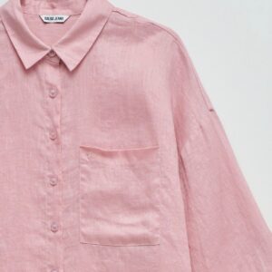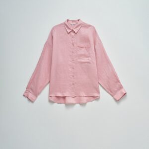 Leve e intemporal, esta camisa de linho em cor rosa destaca-se pelo seu fit loose e pelo conforto natural do tecido. O colarinho clássico, a abertura com botões e o bolso no peito reforçam a sua versatilidade, tornando-a ideal para criar looks descontraídos e elegantes em qualquer ocasião.