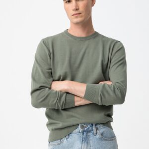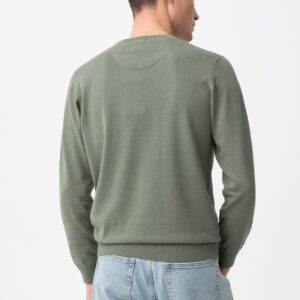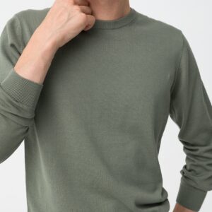 Camisola masculina slim de manga comprida em verde suave, com acabamento tricotado e punhos canelados.