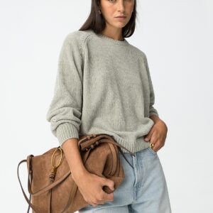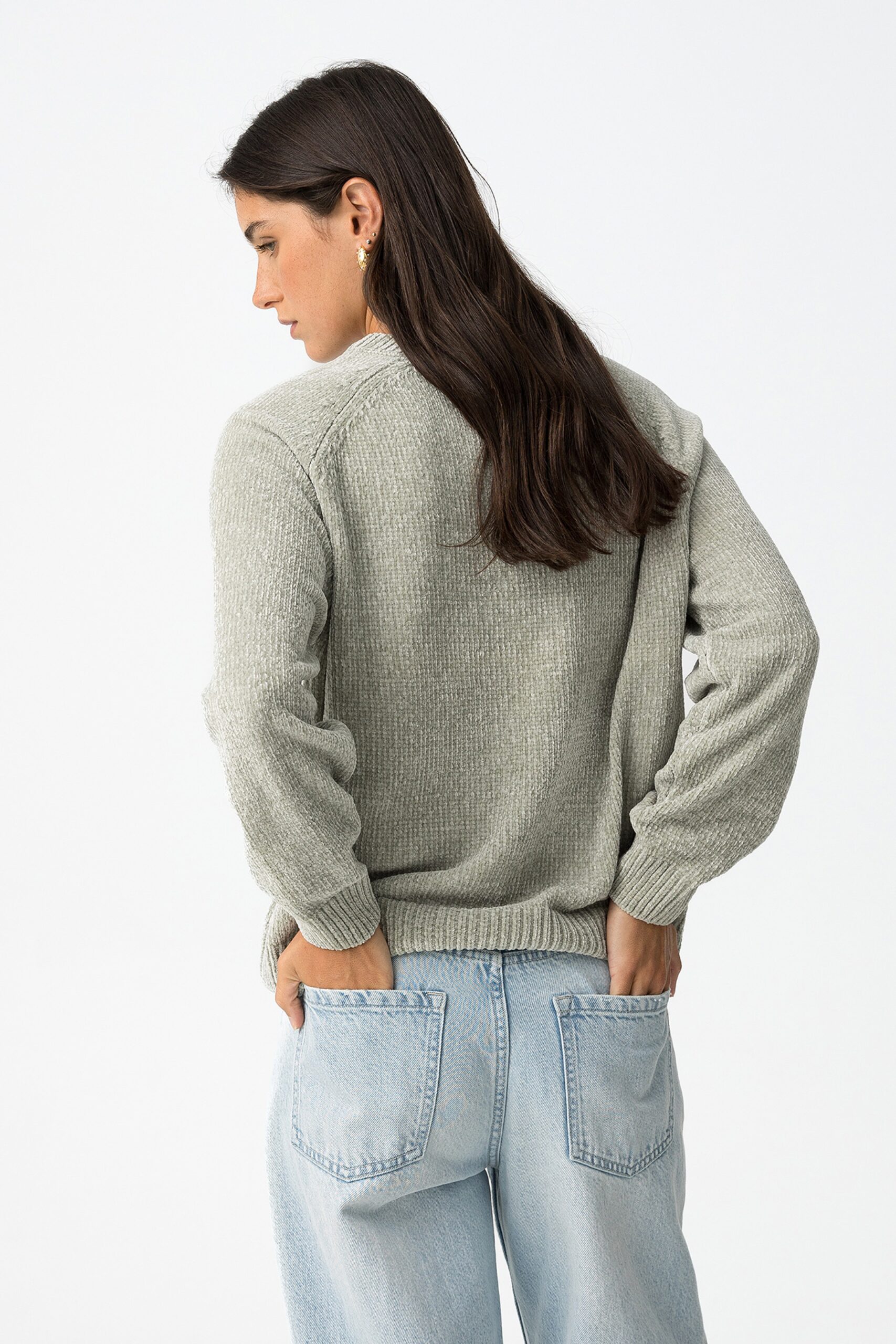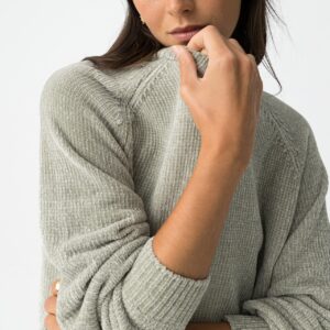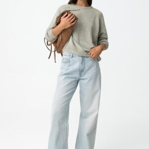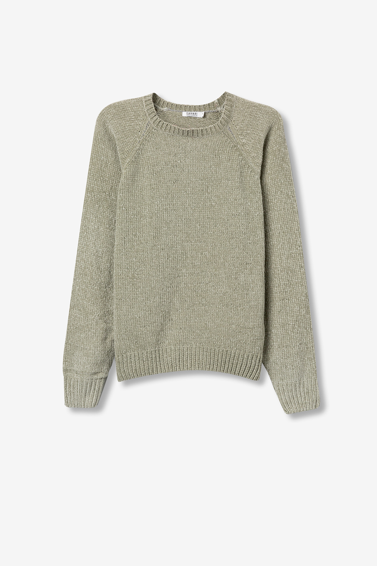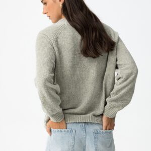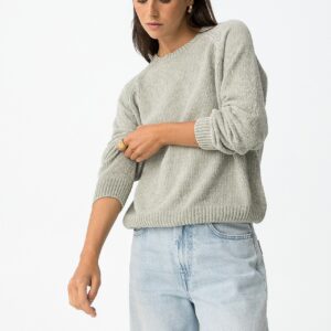 Camisola relaxed fit, com gola redonda. Acabamentos em rib na gola, punhos e bainha. Malha de textura suave com aspeto ligeiramente felpudo.