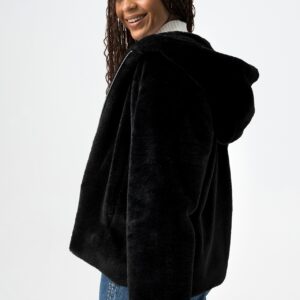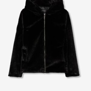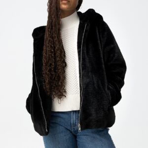 Casaco curto relaxed fit de pelo sintético com dois bolsos frontais, fecho de correr, capuz e manga longa.