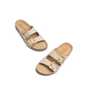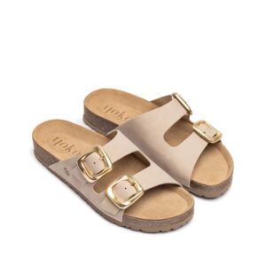 As nossas sandálias planas GRANADA 700 em bege são um autêntico ícone na nossa coleção, a melhor companheira no dia a dia, qualidade excecional e conforto superior. Junto às suas fivelas douradas, conta com uma sola de 2,5 cm e uma palmilha antiderrapante que garante o agarre do pé. Estão elaboradas de forma artesanal em Espanha, material de pele e uso de corantes vegetais respeitantes ao meio ambiente. Fabricação espanhola.