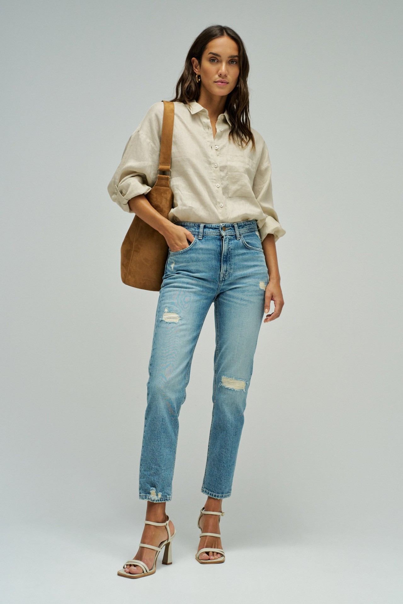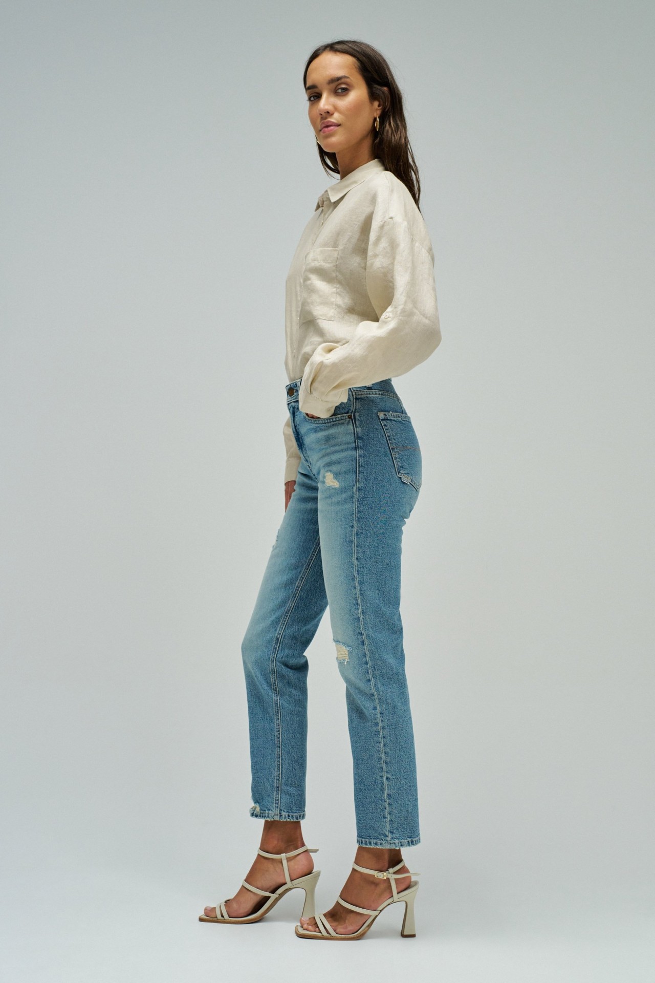 Os jeans true são a escolha perfeita para um look moderno. Com cintura alta, estes jeans proporcionam conforto durante todo o dia. A perna cropped slim alonga a silhueta, enquanto a lavagem vintage adiciona um toque clássico. Com cinco bolsos funcionais, abertura frontal com fecho de correr e botão, e presilhas para cinto, são versáteis e práticos para qualquer ocasião.