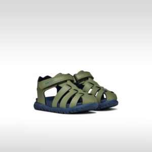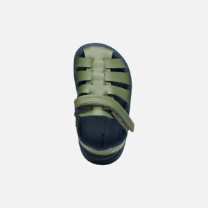 Sandália infantil resistente à água e de secagem rápida, com prático fecho de tira. Nesta versão que combina verde salva e azul marinho, é fabricada em material com efeito de pele. Confortável e protetora, a Fusbetto é a companhia ideal para as aventuras diárias e as primeiras brincadeiras ao ar livre.