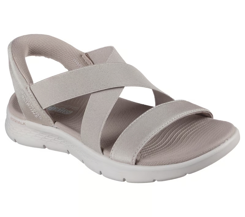 É muito fácil usar as tuas sandálias desportivas preferidas Skechers Hands Free Slip-ins®: GO WALK Flex™ Sandal – Glimmer Up. Concebidas com a nossa tecnologia Heel Pillow™, estas sandálias com tiras slip-on têm parte superior em malha com reforço no calcanhar, palmilhas anatómicas Goga Mat® e amortecimento leve ULTRA GO®.