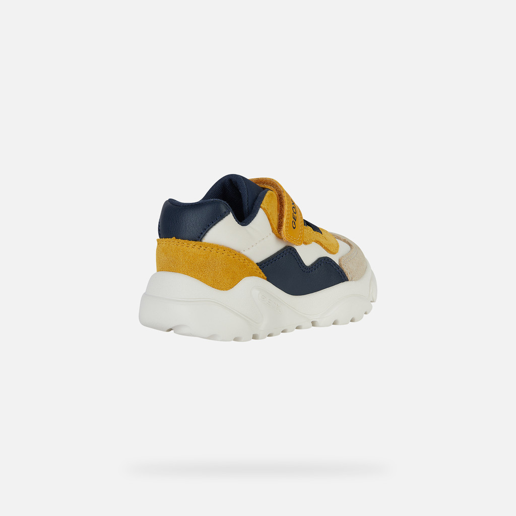 Sneaker low-cut bebé com um design contemporâneo de inspiração running. Com a sua parte superior toupeira e amarelo-ocre, Ciufciuf é um modelo perfeito para completar com um toque modernos os mini looks mais desportivos. Realizado em nylon e camurça, este modelo é respirável e apresenta uma sola super leve que garante um amortecimento ideal.