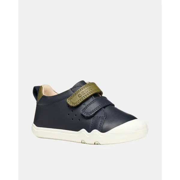 Sneakers low-cut baby leves e extremamente confortáveis, que recriam a sensação natural de caminhar com pés descalços. Aqui declinados em azul marinho com detalhes verde, os Steppieup são fáceis de ajustar graças ao prático fecho com tira dupla. Realizado em napa muito macia, este modelo garante bem-estar e proteção ao pé graças à sola especial fina e extra flexível e aos reforços na biqueira.