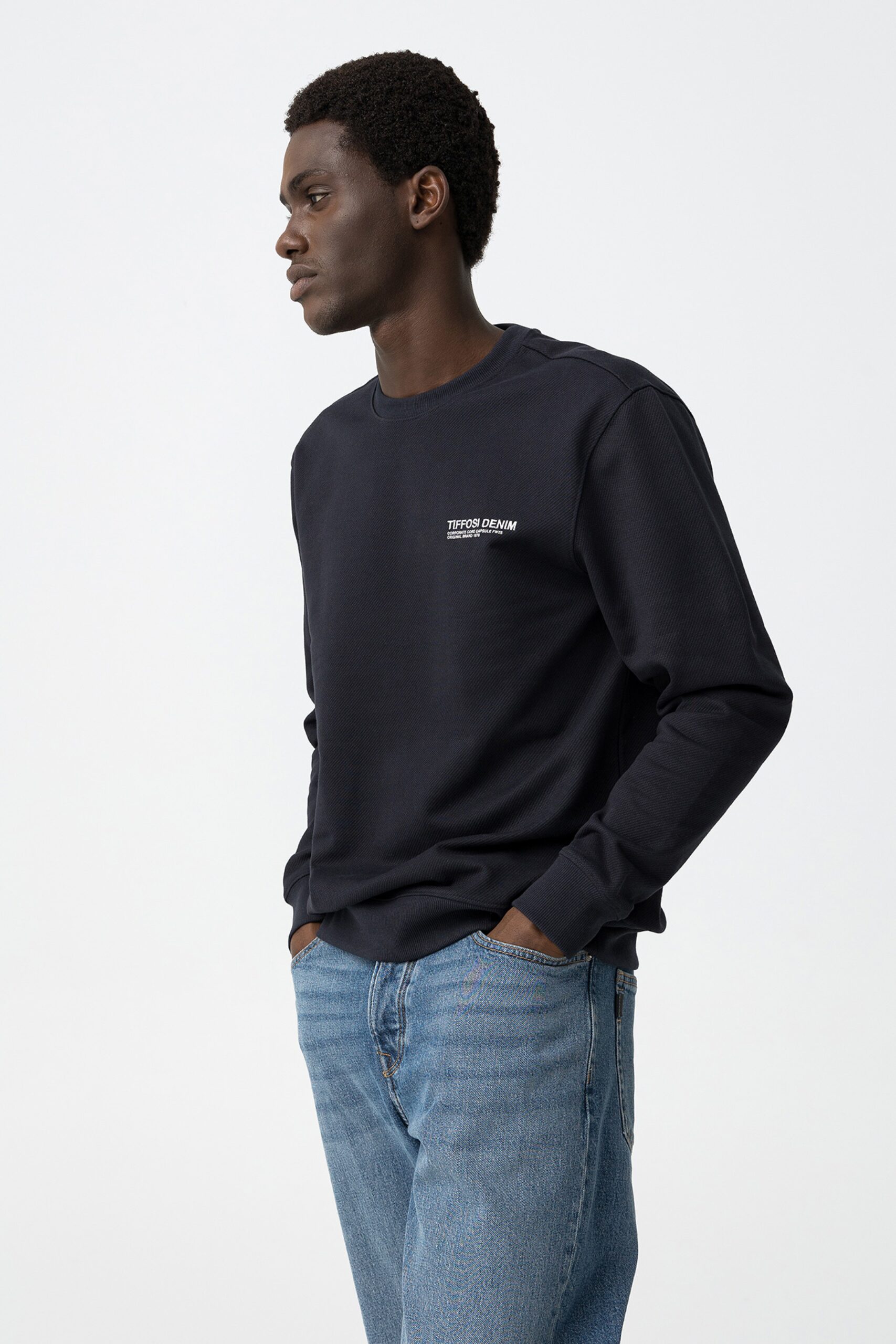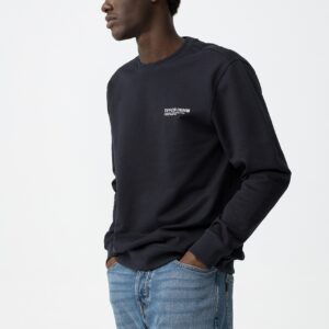 Sweatshirt regular de manga comprida em azul marinho escuro com detalhe de logótipo discreto no peito.