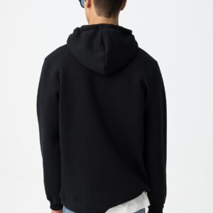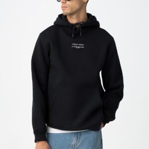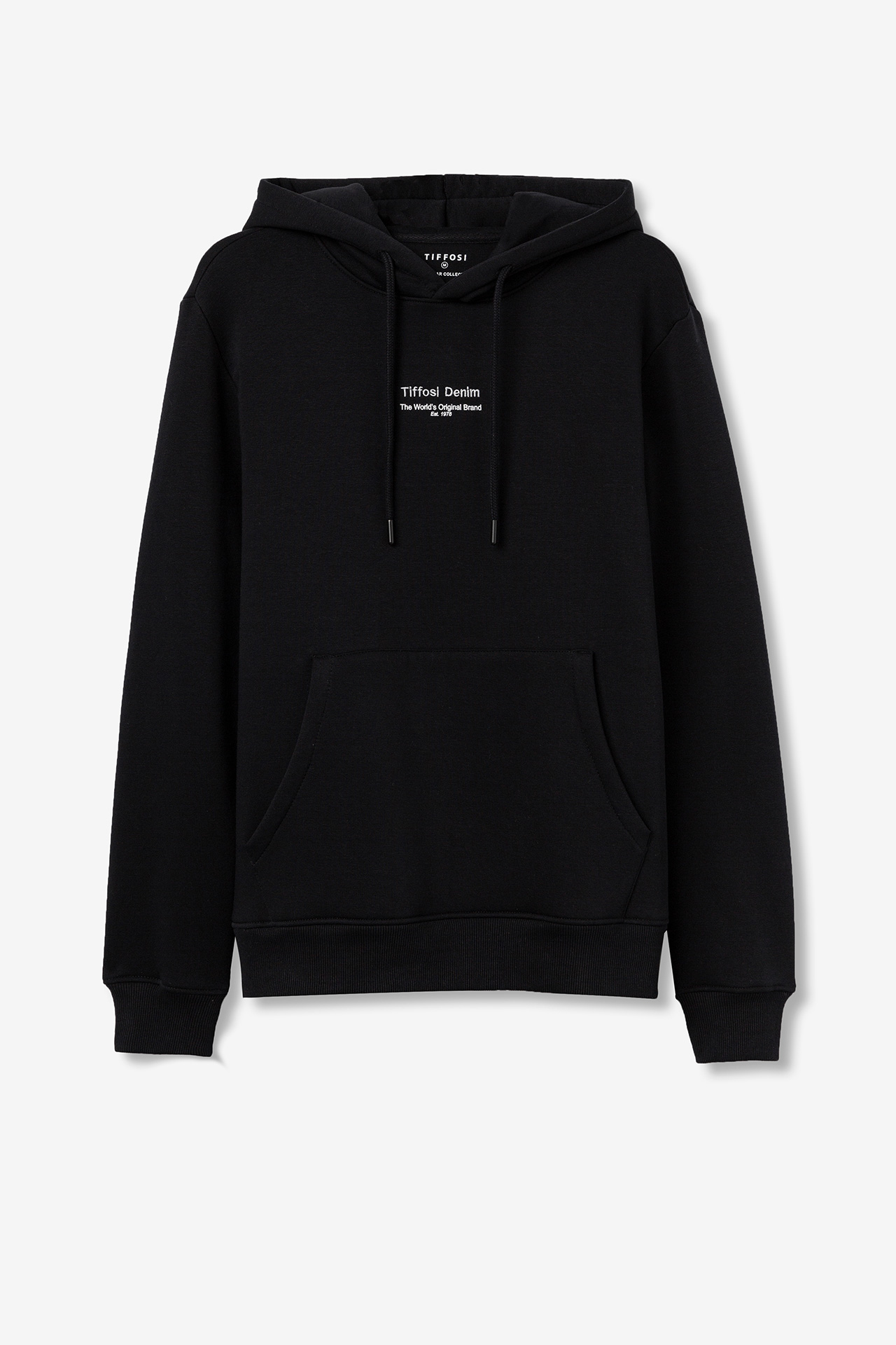 Hoodie estampado de manga comprida e decote redondo com capuz. Bolso canguru frontal e pormenor de costura no peito.