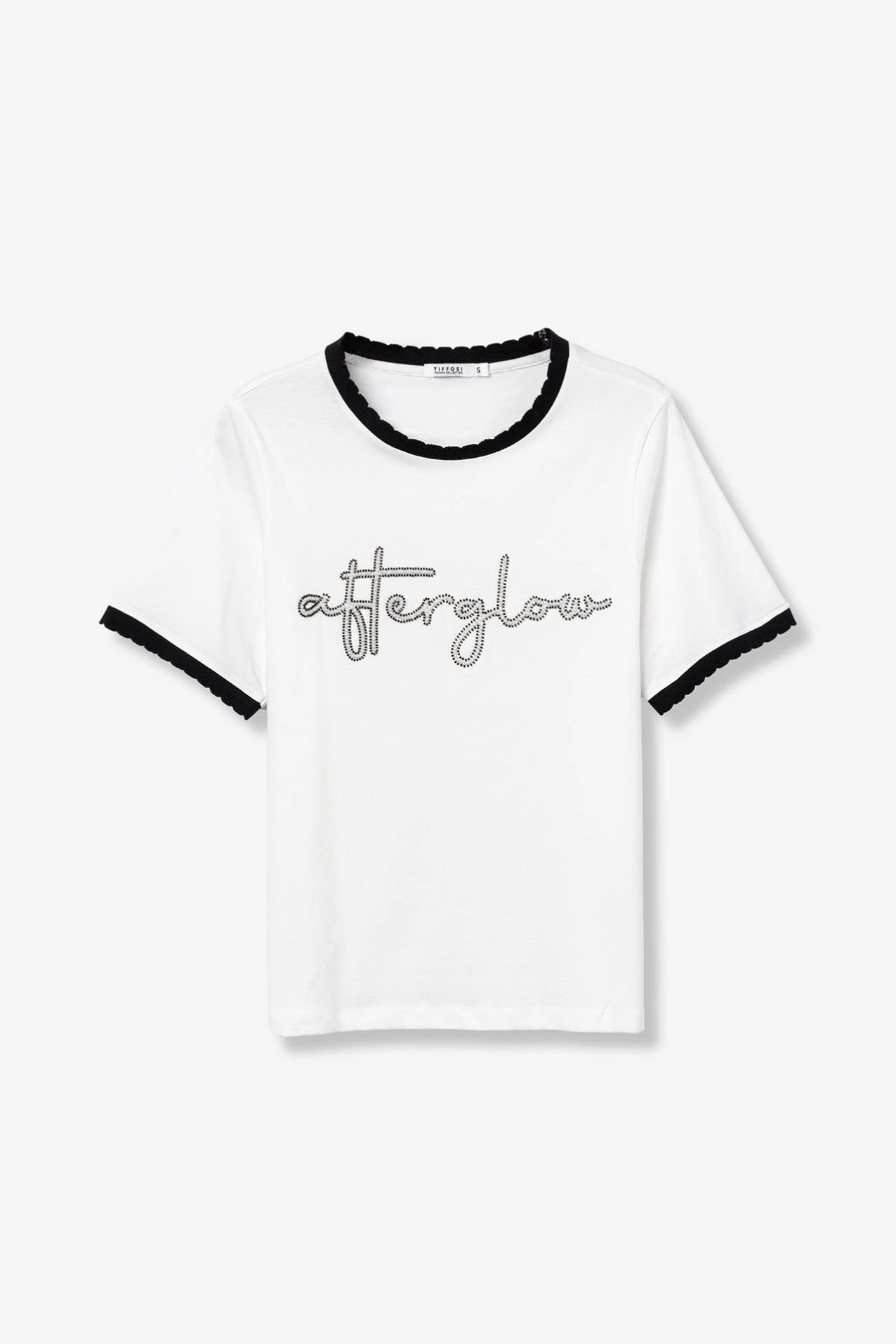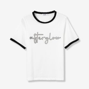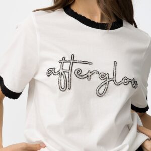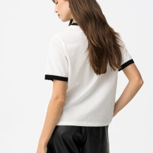 T-shirt de corte regular, de cor cru, com gola e mangas em preto e lettering bordado à frente.