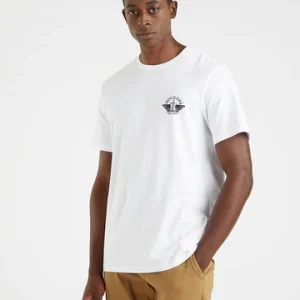 Uma camiseta gráfica favorita de todos os tempos que funciona sozinha ou como camada base. Fizemos este em jersey de puro algodão. Não estica. Usamos algodão reciclado para reduzir o uso de fibra virgem e ajudar a manter o nosso planeta um pouco mais saudável. A utilização de fibras recicladas ajuda-nos a reduzir o desperdício de tecido e a diminuir a quantidade de resíduos que vai para aterros sanitários.