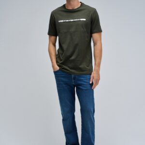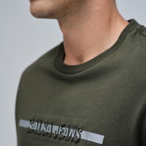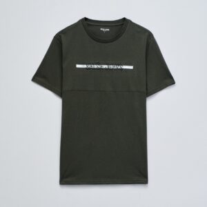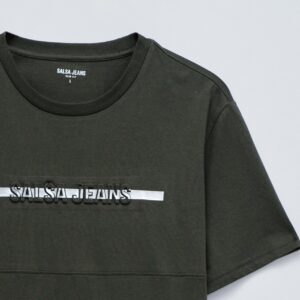 Esta t-shirt, em verde tropa, apresenta um fit slim que valoriza a silhueta e garante conforto. Com mangas curtas e decote redondo, destaca-se pelo branding em relevo na parte frontal, que confere um toque moderno e distintivo ao design.