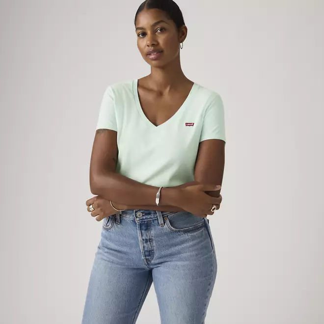 Camisetas casuais como a nossa Camiseta Perfeita com Decote em V foram feitas para combinar com jeans, especialmente uma camiseta tão confortável e bem-feita. Chamamos de perfeita porque ela é — e seria exagero dizer que ela é versátil, ultraconfortável e durável.