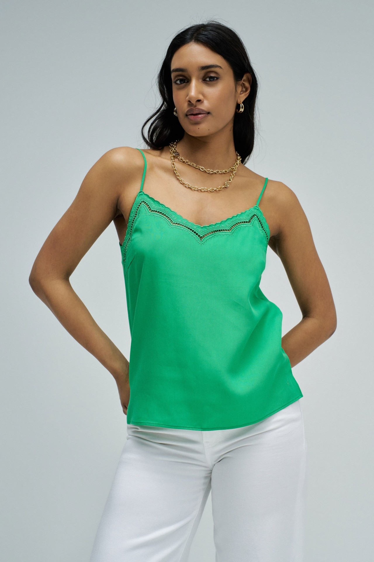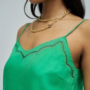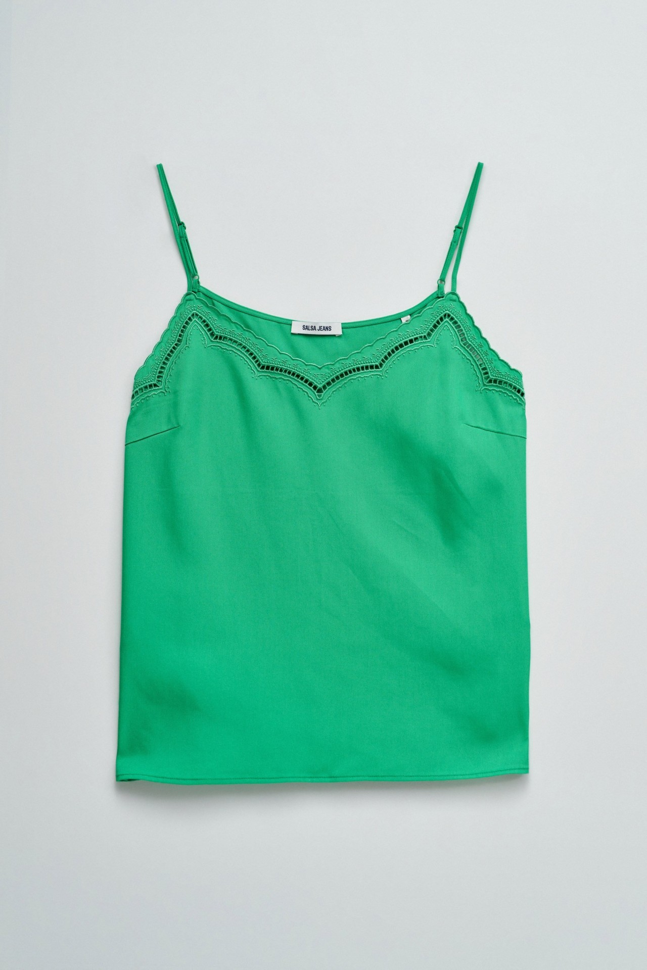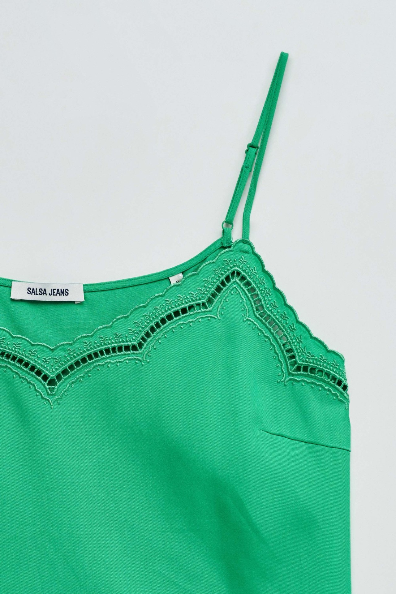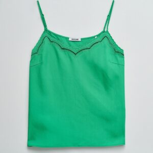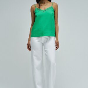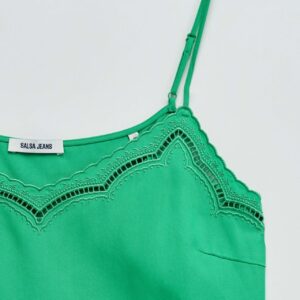 Este top em lightdenim verde com detalhes de renda que elevam o teu look com um toque feminino e sofisticado. O fit regular garante conforto e um caimento natural, perfeito para o dia a dia ou ocasiões especiais. Uma peça versátil que combina facilmente com as tuas jeans favoritas para um estilo moderno e elegante.