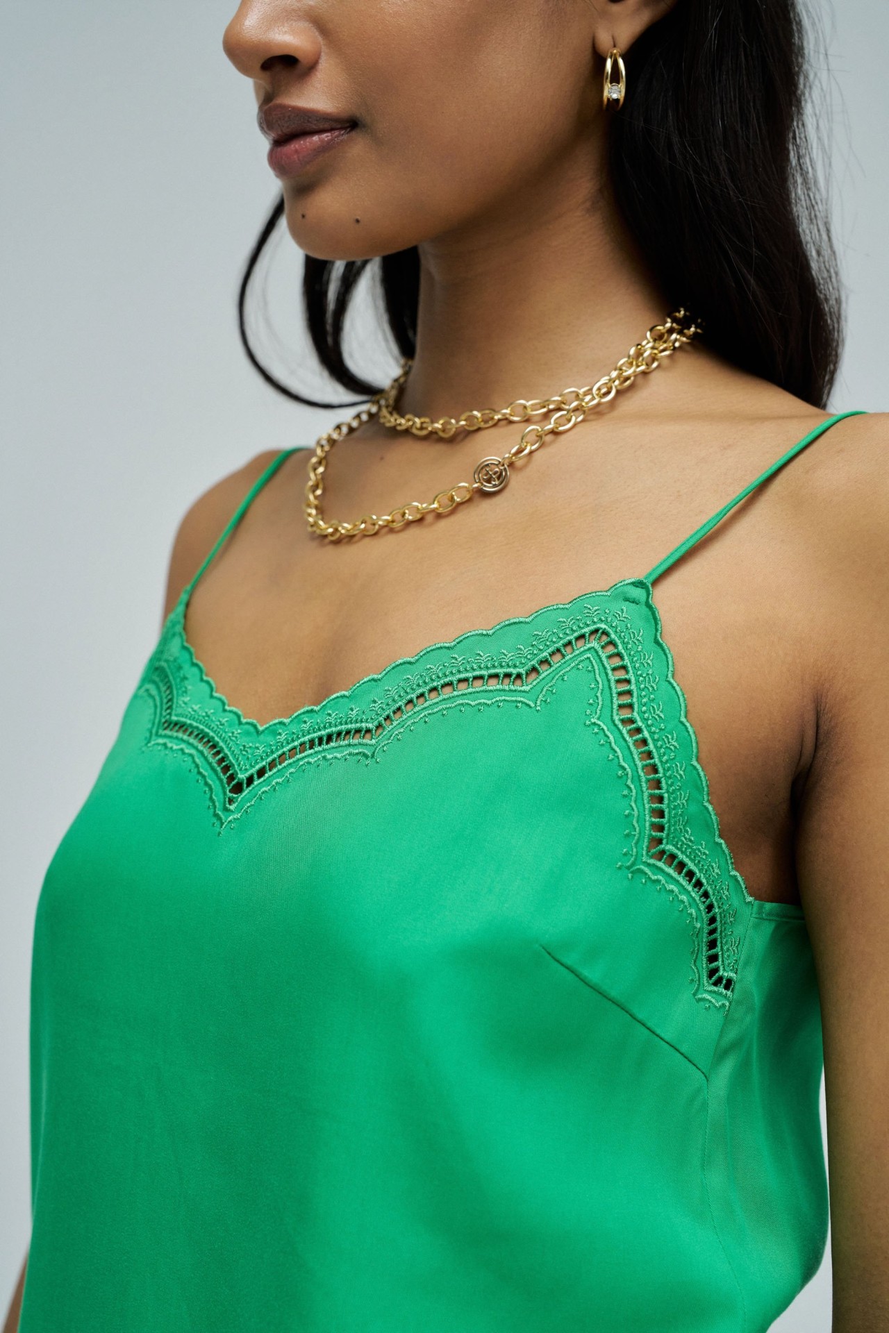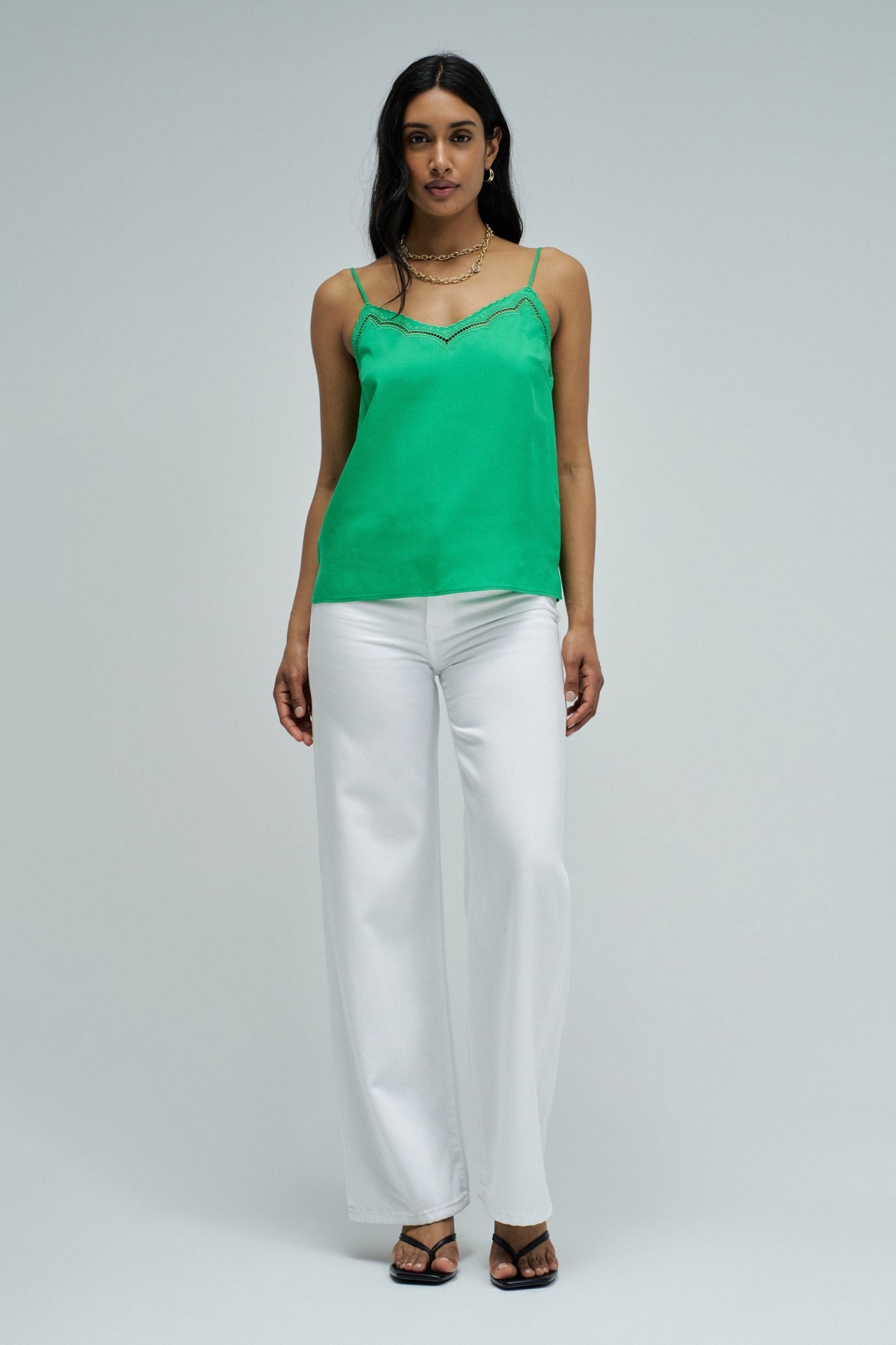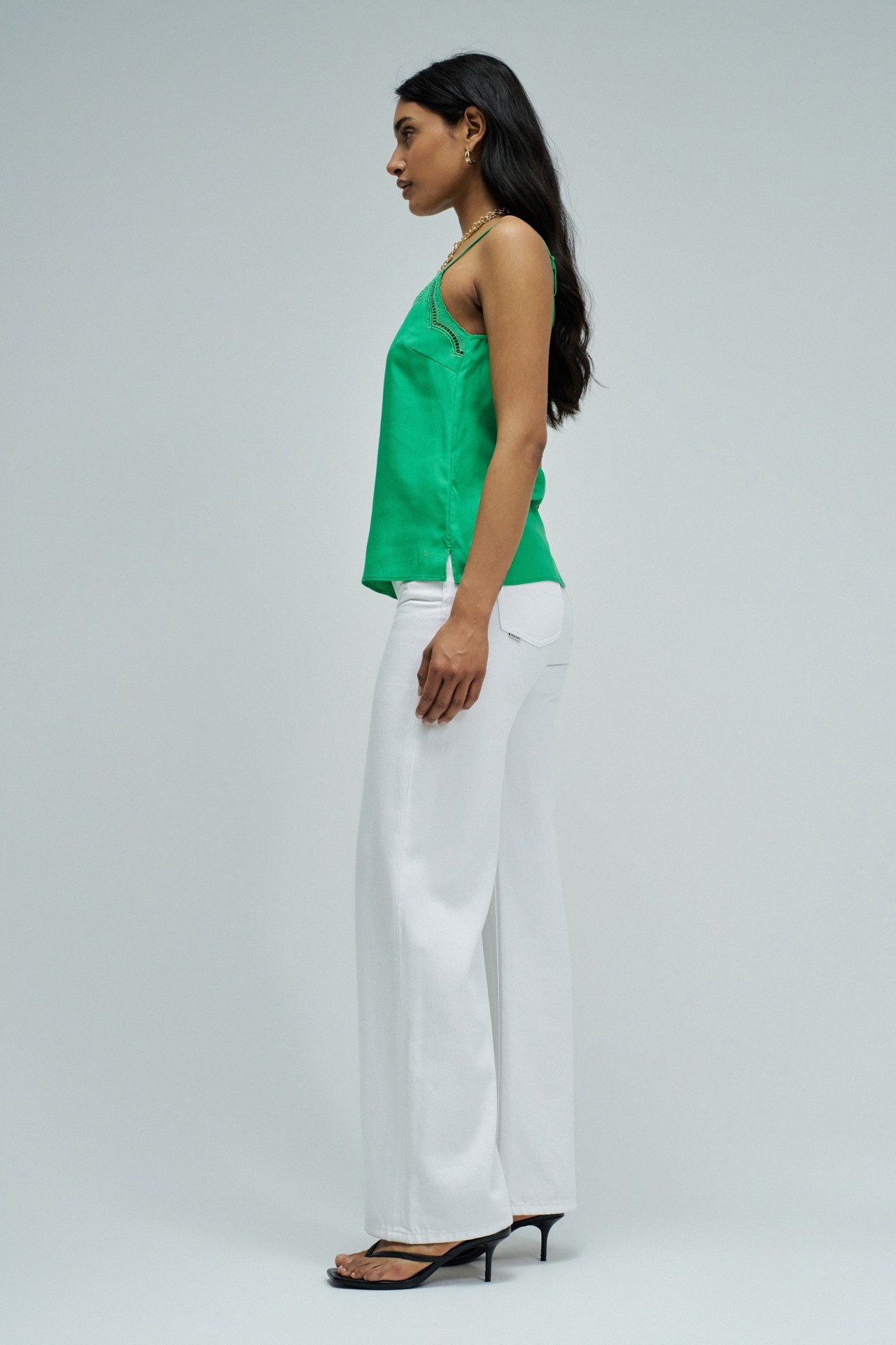 Este top em lightdenim verde com detalhes de renda que elevam o teu look com um toque feminino e sofisticado. O fit regular garante conforto e um caimento natural, perfeito para o dia a dia ou ocasiões especiais. Uma peça versátil que combina facilmente com as tuas jeans favoritas para um estilo moderno e elegante.