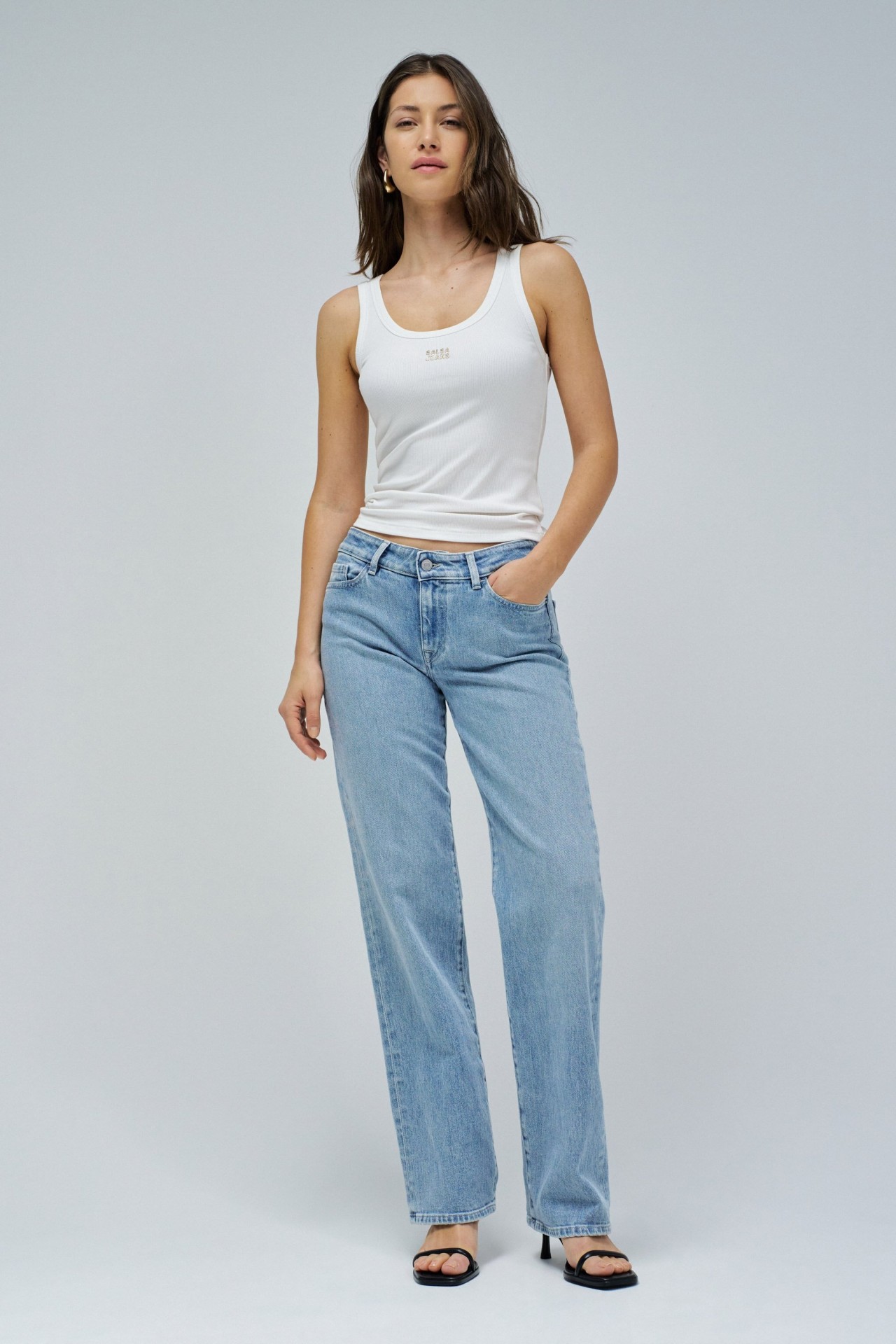 Este top básico em malha canelada é aquele essencial que combina com tudo. De corte slim e sem mangas, assenta na perfeição ao corpo, garantindo conforto e um toque moderno. O decote redondo dá-lhe um ar descontraído, enquanto o aplique de branding no peito acrescenta um detalhe subtil, mas cheio de personalidade. Em preto clássico, é uma peça fácil de conjugar, seja com jeans, calções ou saias.
