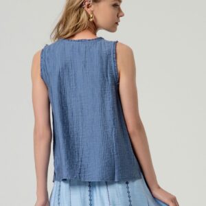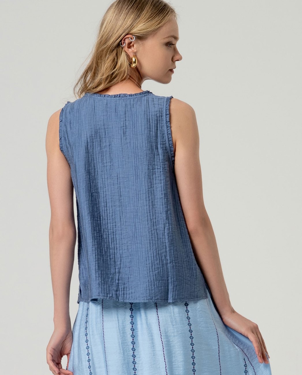 Blusa com decote em V e mangas com cava com detalhes micro-babados no contorno. Tecido com textura de efeito amassado e manche nas costas com leve franz. Feito de uma mistura de viscose, lyocell e poliamida. Projetado em Barcelona.